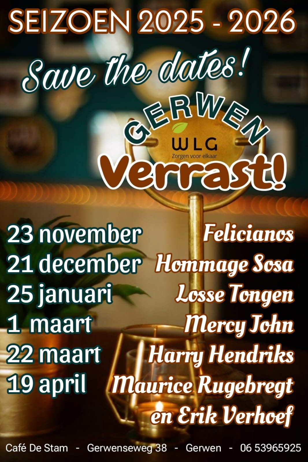 De serie Gerwen verrast...is een activiteit van de Werkgroep Leefbaarheid Gerwen en biedt een gevarieerd programma van lunchconcerten.